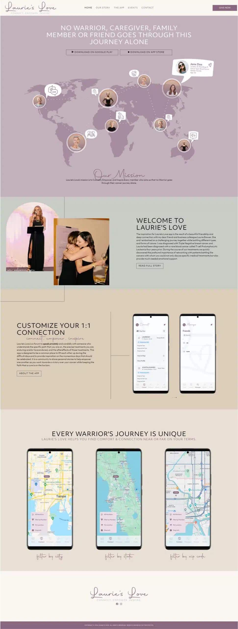 Laurie's Love approached Skyway Media three years ago, aiming to realize the founder's vision of creating a supportive community for cancer warriors and their loved ones. Starting with app prototypes developed by Skyway Media, the project focused on enabling users to connect based on specific criteria such as location and cancer type. This initial success led to crucial funding for full custom app development. Today, Laurie's Love benefits from Skyway Media's comprehensive digital marketing strategies, including social media management, email marketing, programmatic advertising, and Google PPC. This ongoing partnership ensures Laurie's Love continues to grow and support its community, providing a platform for connection and compassion.
