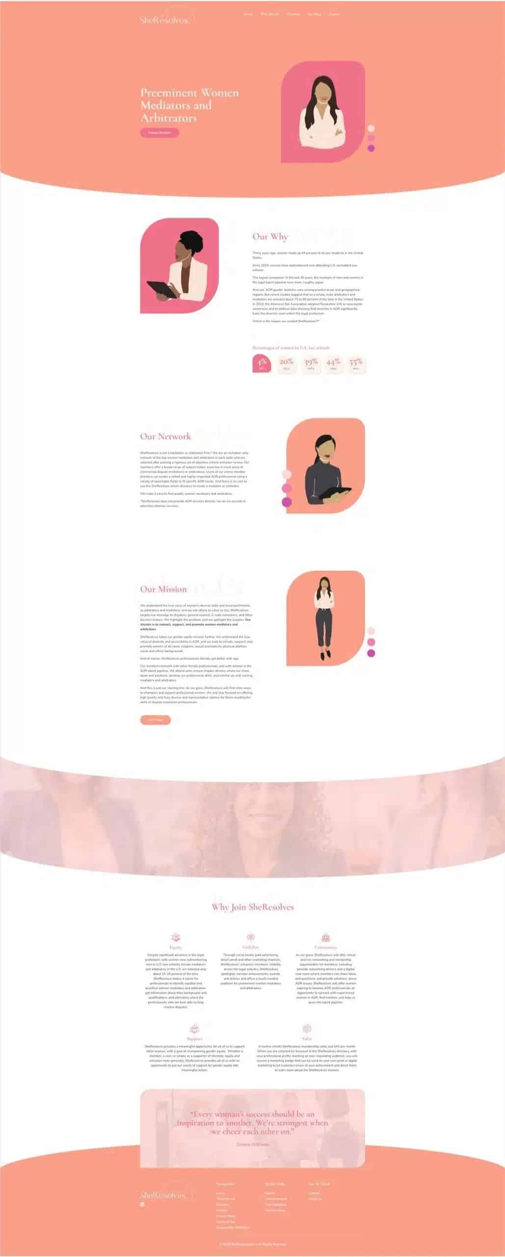 SheResolves approached Skyway Media with a vision for a unique platform to bridge female mediators and arbitrators with C-level executives, a niche focus that sets them apart in the legal field. Understanding the rarity and importance of such a connection, Skyway Media undertook a comprehensive project to design and develop their website. We began with a brand refresh, enhancing fonts, palettes, and overall design to create a cohesive and appealing aesthetic. Our team then developed a sophisticated legal directory, featuring intuitive filters and robust search functionality, ensuring users can easily find the right professional. The result is a beautifully crafted website that not only serves a vital purpose but also stands out in its uniqueness and elegance, reflecting the distinctive mission of SheResolves.